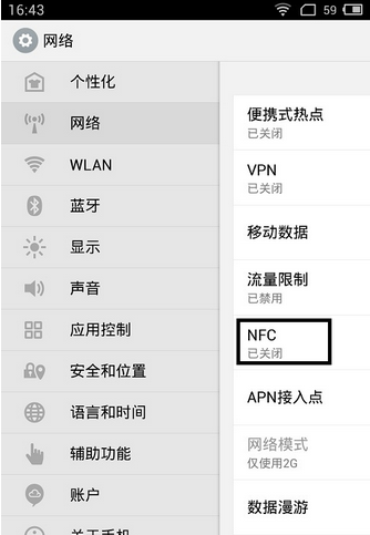 第一步:點(diǎn)擊設(shè)置——網(wǎng)絡(luò),然后點(diǎn)擊NFC,就可以成功開啟,魅族MX3是默認(rèn)開啟的,如果你不需要用到這個(gè)功能,再點(diǎn)擊一次就可以關(guān)閉了。