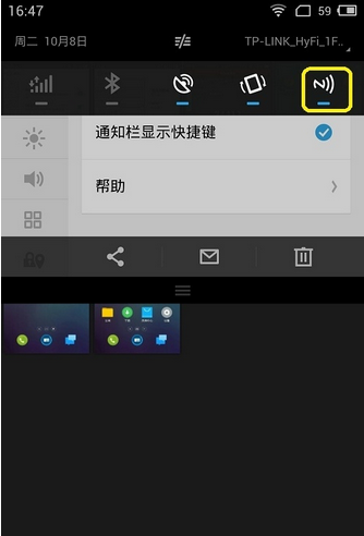 第四步:如果你經(jīng)常使用NFC,你也可以將NFC放到通知欄,以便設(shè)置開關(guān)和傳送。
