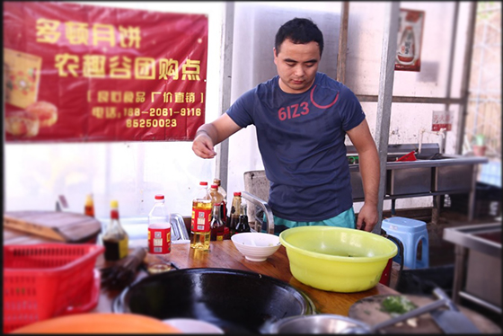 驚鴻一瞥,黃大廚手起鏟落,掀翻一塊塊滾動的雞肉。