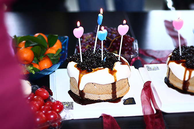 壽星一襲紅色套裙,黑發(fā)黑瞳,迎著獵獵燭光,斜睨眼眸,